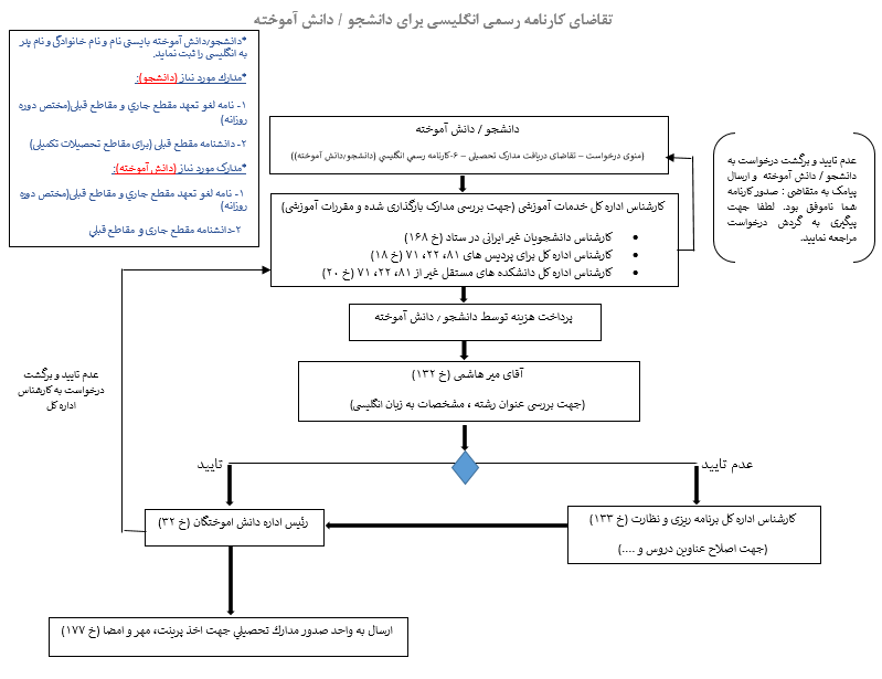 کارنامه رسمی انگلیسی برای دانشجو / دانش آموخته ۲۰ مهر ۱۴۰۴ | ۱۲:۲۱ کد : ۴۲۷۶ راهنماهای دانشجویان راهنماهای دانش آموختگان ارسال به دیگران نام شما ایمیل شما ایمیل دریافتکننده ارسال انصراف تعداد بازدید:۵۴۱۹ جهت مشاهده فلوچارت درخواست کارنامه رسمی انگلیسی اینجا کلیک نمائید. چگونه تیکت ثبت نمائیم؟