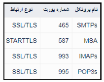۳. آدرس سرویس های IMAP و SMTP