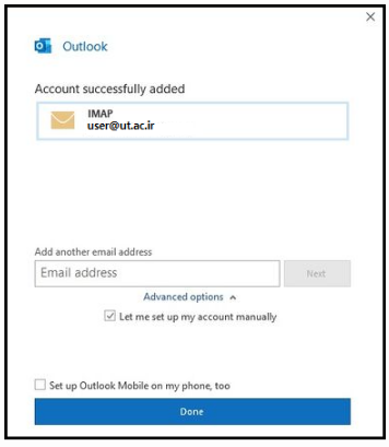 زمانی که نیاز به تنظیم اکانت دیگری داریم قسمت Add another email address را پر و دکمه next را کلیک کنیم و ادامه مطابق بالا خواهد بود