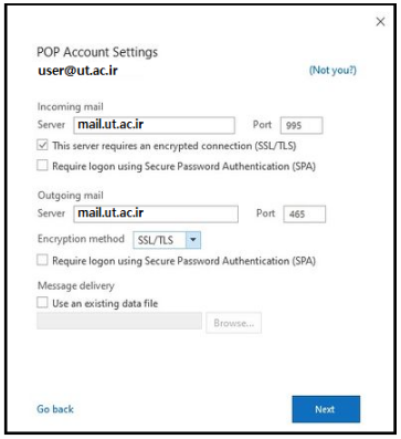 برای تنظیم از طریق POP3 بصورت زیر انجام می دهیم و دکمه next را می زنیم.