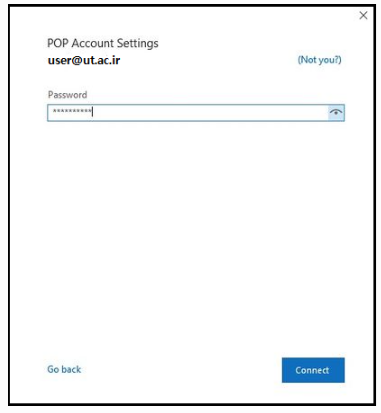 در این مرحله پسورد ایمیل خود را وارد میکنیم و بر روی Connect کلیک میکنیم.