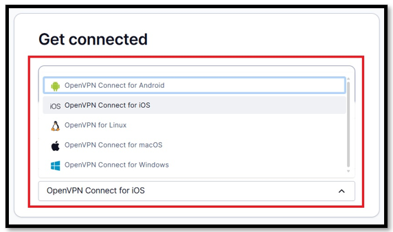 ب - برای دریافت اپلیکیشن OpenVPN Connect بر روی سیستم عاملهای دیگر، از منوی for other platforms در تصویر، سیستم عامل مورد نظرتان را انتخاب نموده و سپس دانلود نمایید.