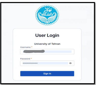 ۲.شناسه یکتا و گذرواژه حساب کاربری خود را وارد نمائید.