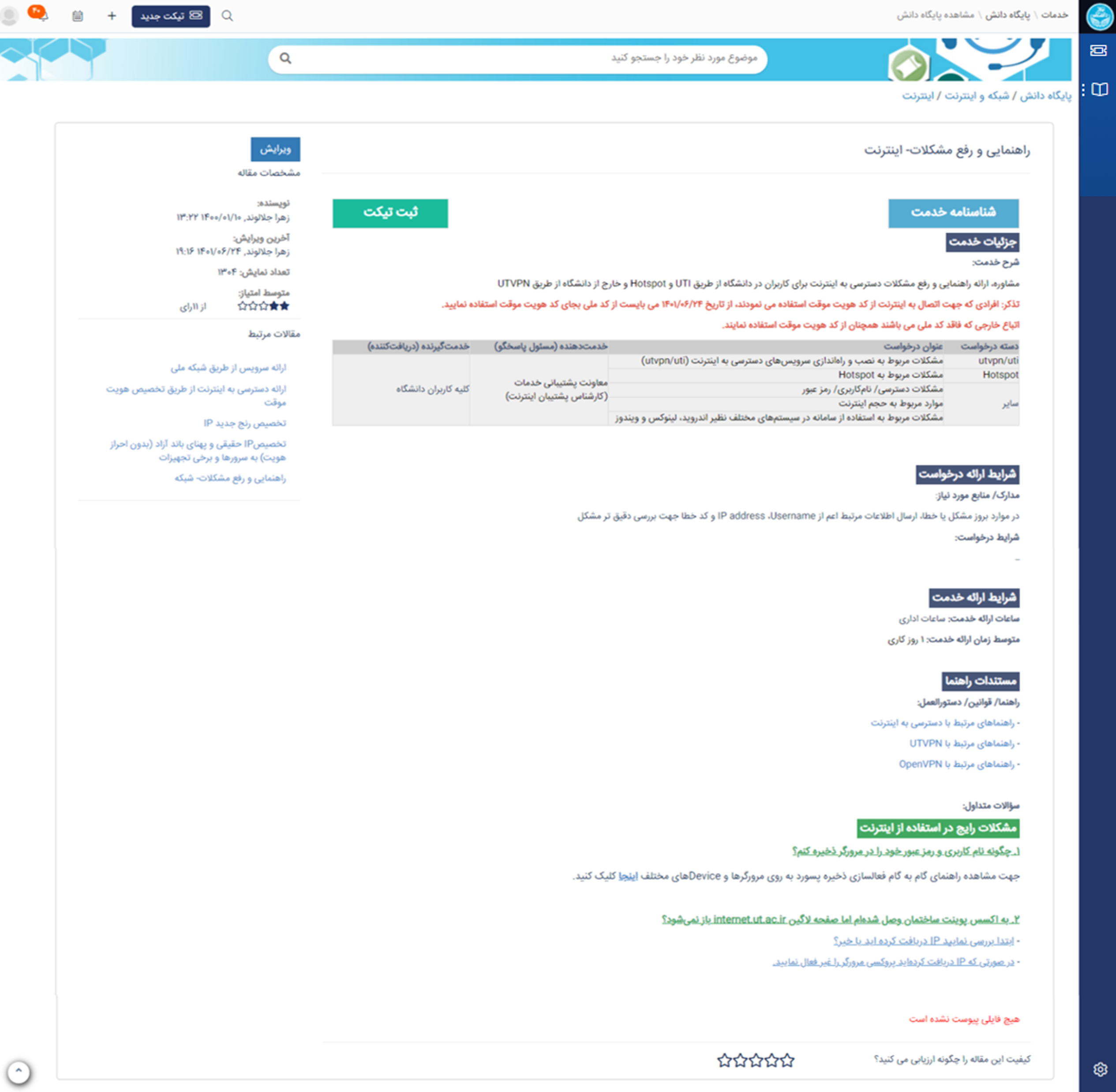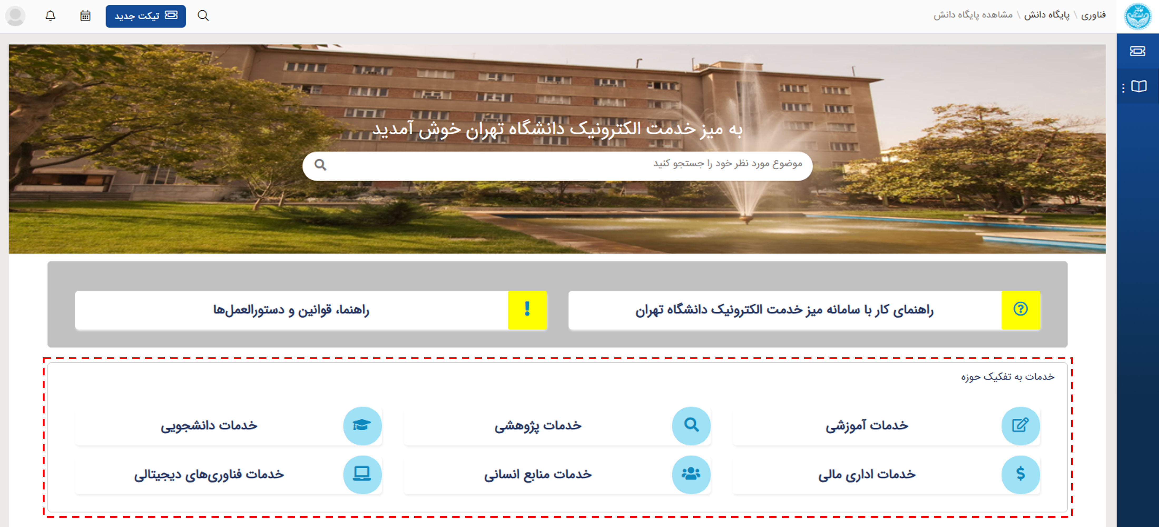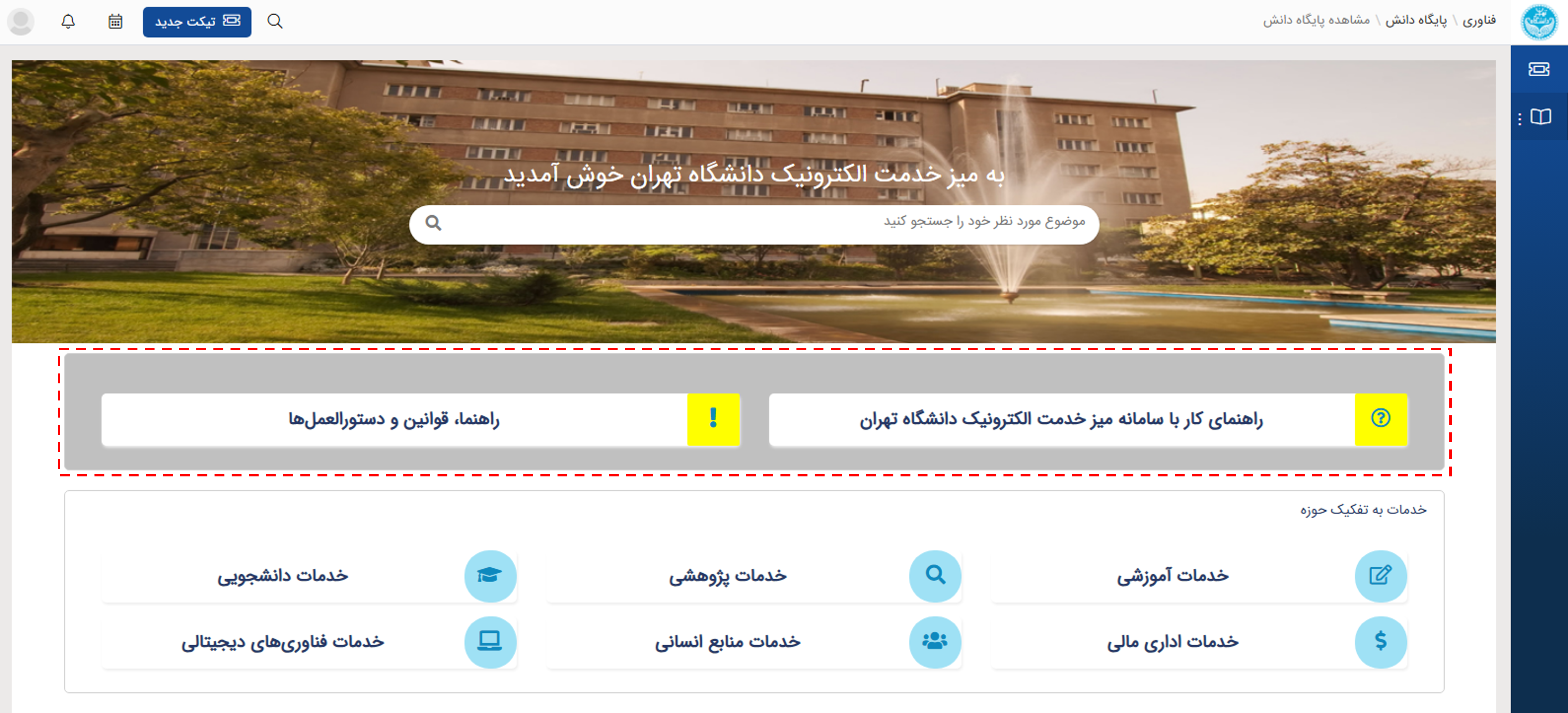 آشنایی با پایگاه دانش سامانه میز خدمت الکترونیک دانشگاه