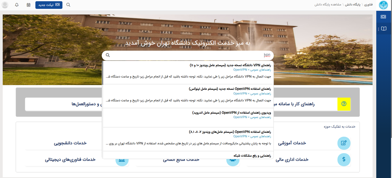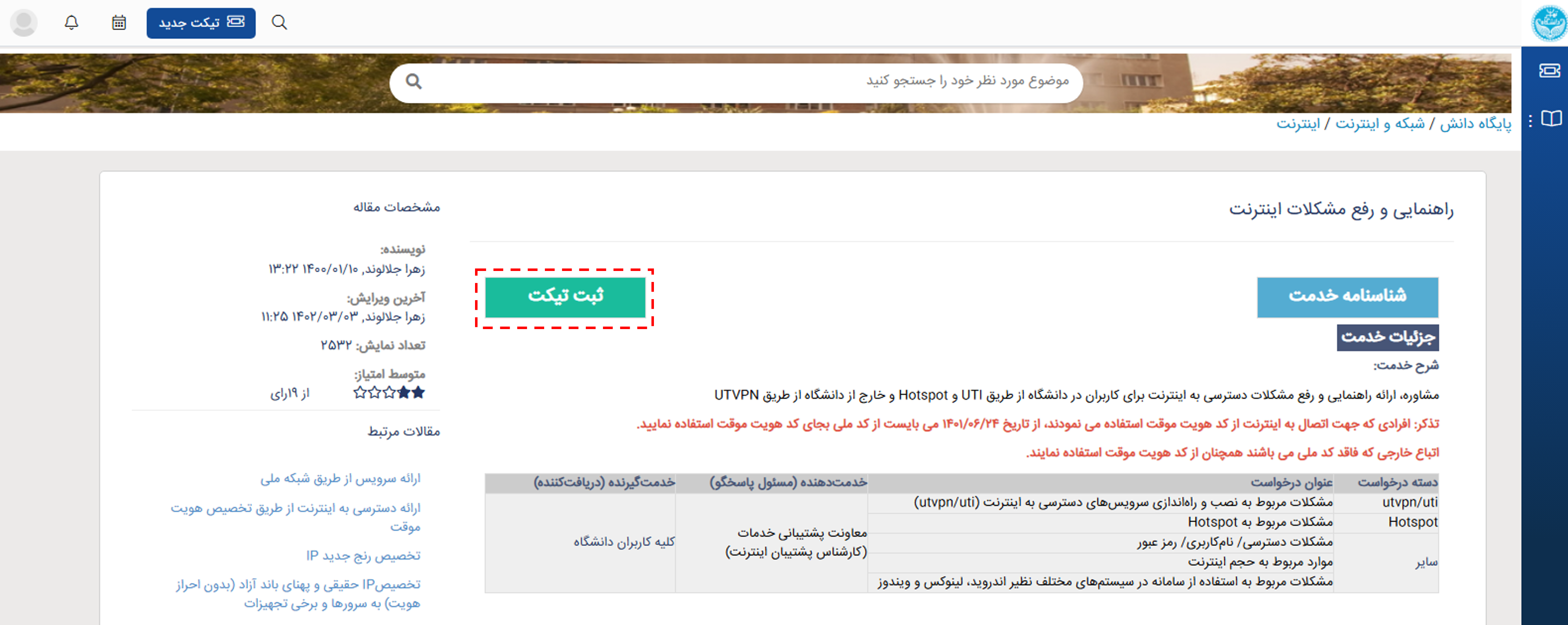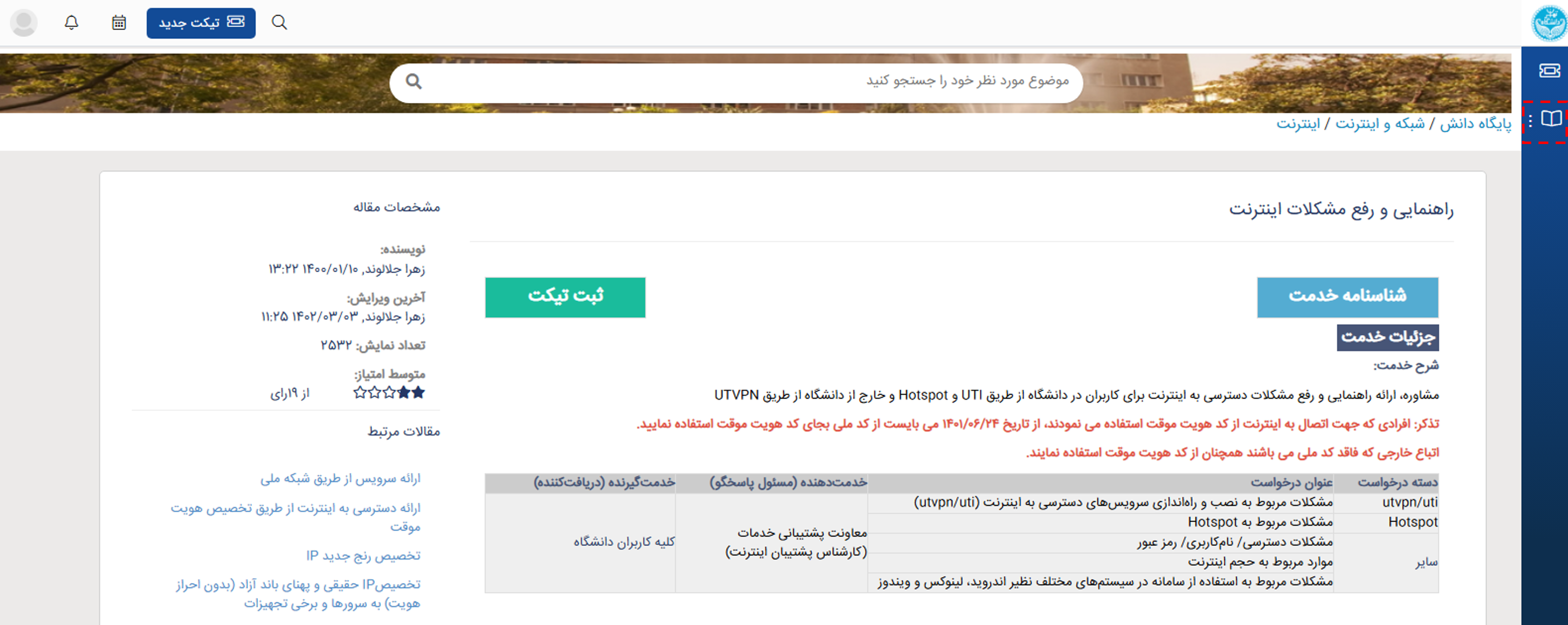 آشنایی با پایگاه دانش سامانه میز خدمت الکترونیک دانشگاه